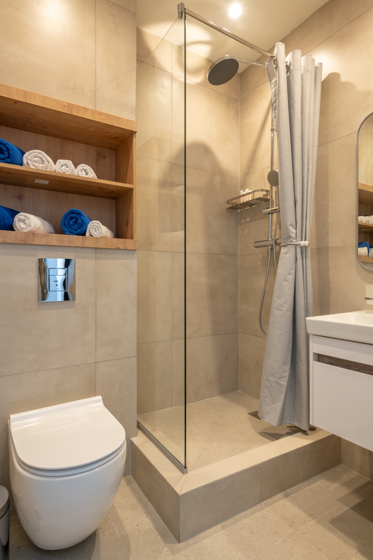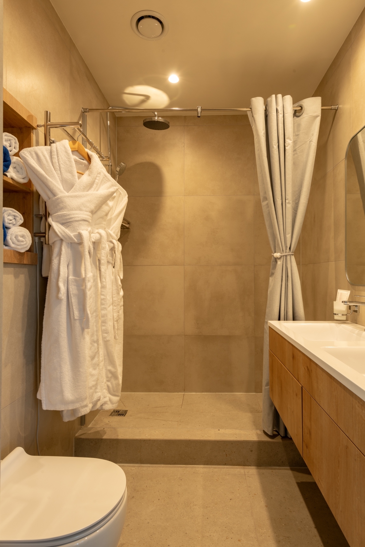 Состоит из спальни с двуспальной кроватью, прикроватными тумбочками и светильниками, гостиной с набором мягкой мебели (раскладной диван, 2 кресла, журнальный столик),телевизор, кондиционер, и кухни с набором посуды и микроволновой печью, холодильником. Также в номере коридор с гардеробным шкафом, утюг с гладильной доской. Подойдет для семьи с детьми. Гостевой санузел, ванная комната с душем и совмещенным санузлом (туалет, умывальник, фен, набор полотенец и банные халаты). Возможно размещение 3 человек на дополнительных местах. Все номера с балконами и видом на море, расположены в корпусах 10 и 11.