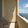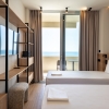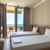 В номере две односпальные кровати либо двуспальная кровать, две прикроватные тумбочки, две прикроватные лампы, туалетный столик с зеркалом, гардеробный шкаф, телевизор, холодильник, кондиционер, санузел (душ, умывальник, туалет, фен), балкон с видом на море а набором летней мебели.